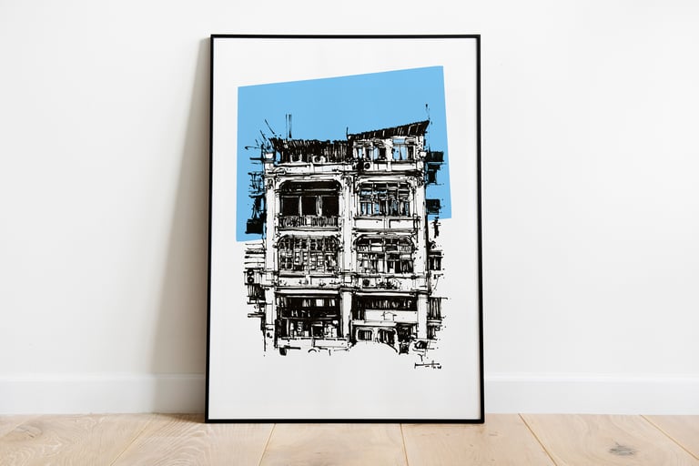 Fine Art Print of an ink drawing of 386-388 Lai Chi Kok Road.